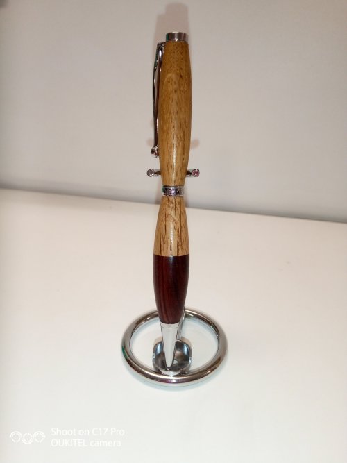 Stylo réalisé en chêne et en bois de violette sur la partie inférieure. TVA non applicable, article 293 B du CGI