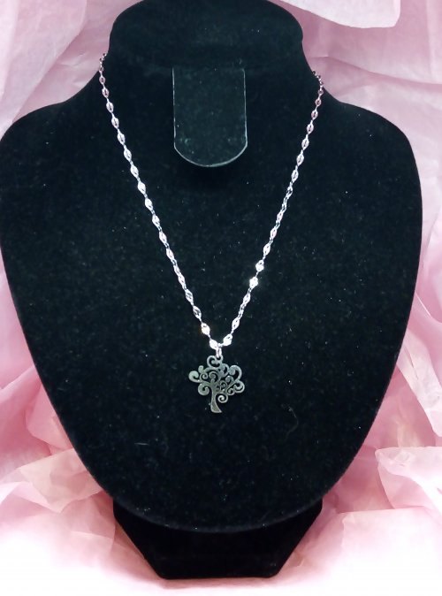 Pendentif "Arbre de vie" (modèle 2) sur chaîne maille fantaisie, le tout en acier inoxydable