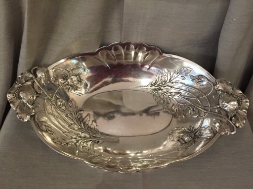 PLATEAU DE PRESENTATION CORBEILLE GALLIA EN METAL ARGENTE EPOQUE ART NOUVEAU