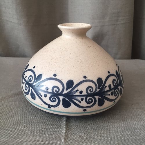VASE SOLIFLORE VINTAGE BEIGE ET BLEU